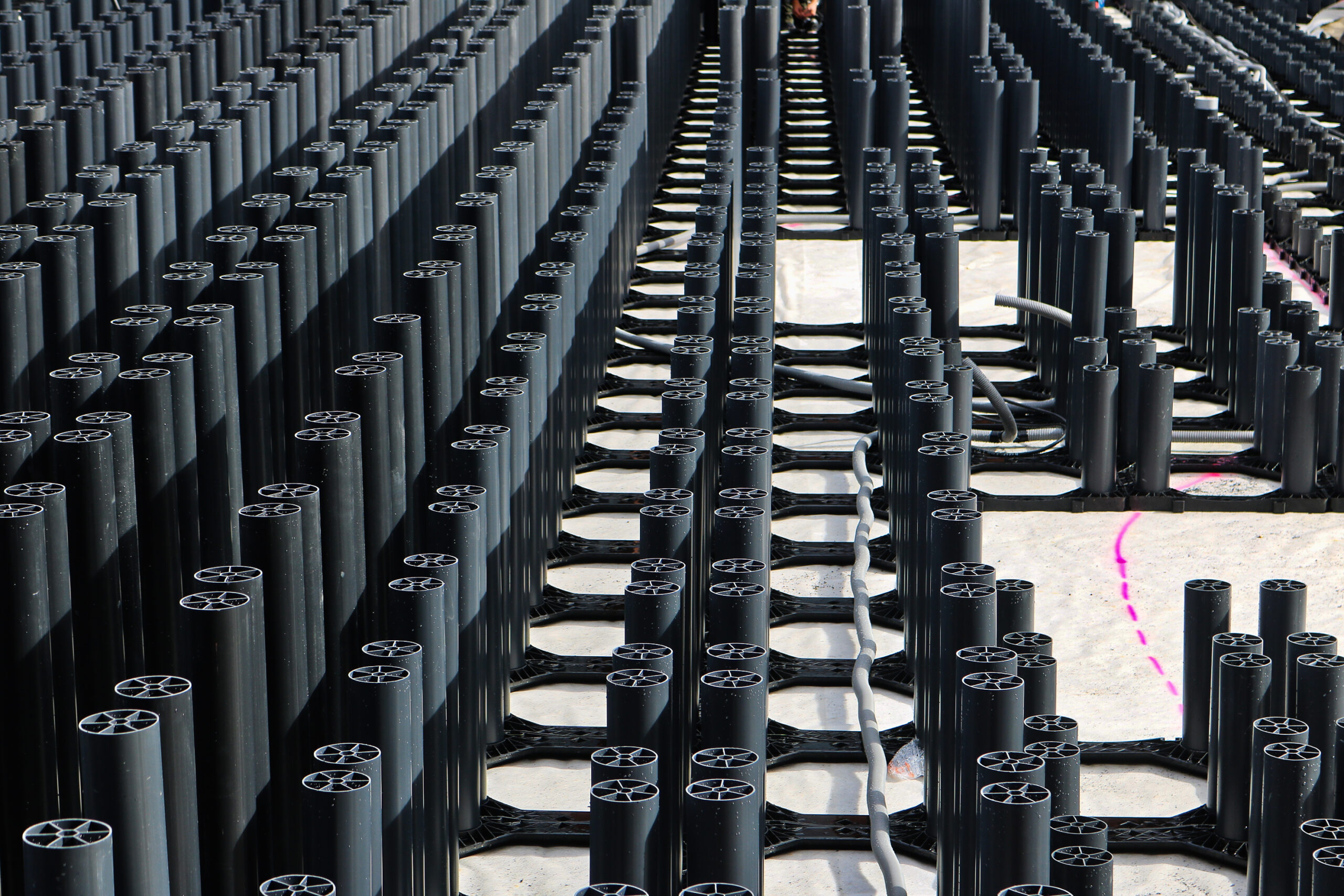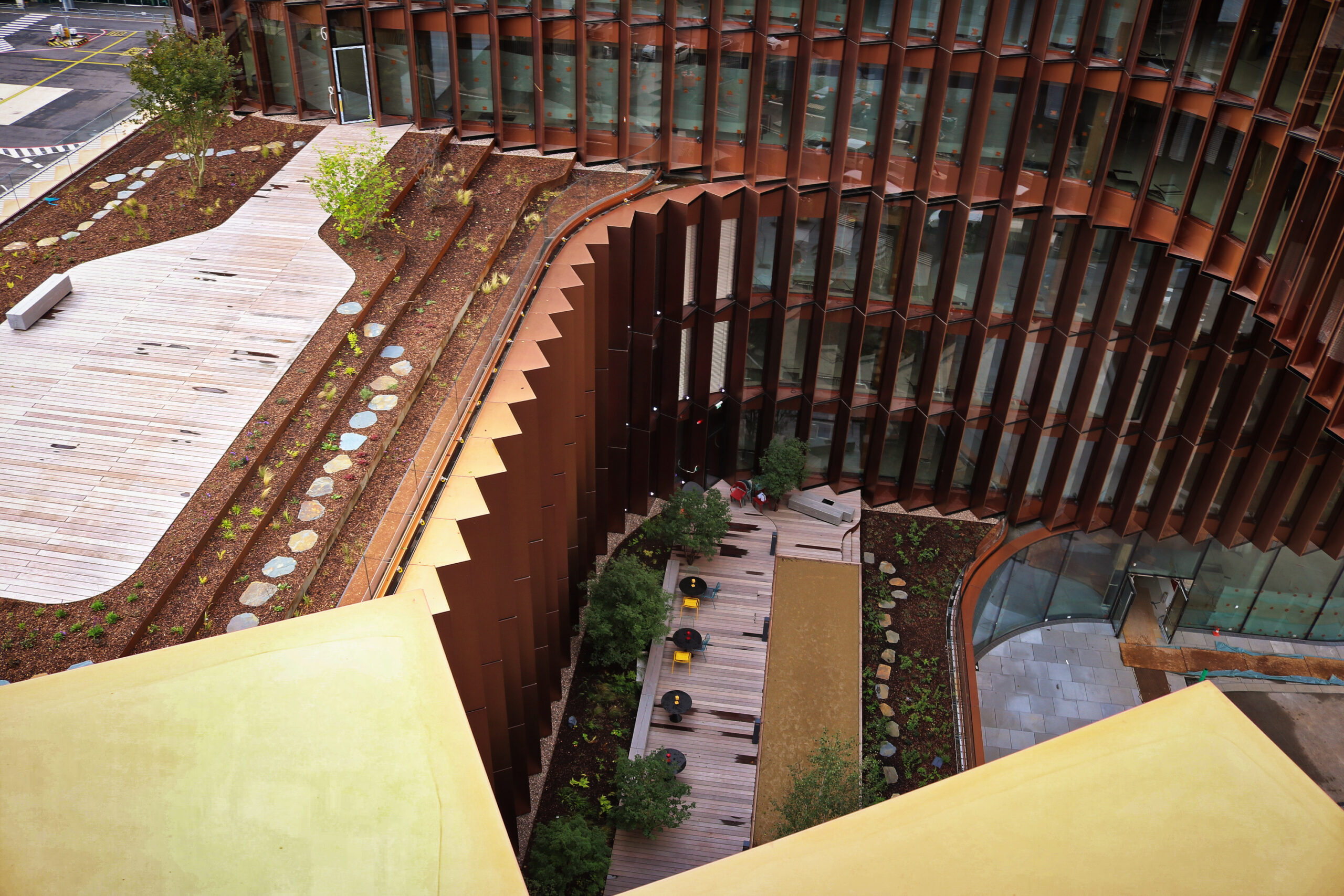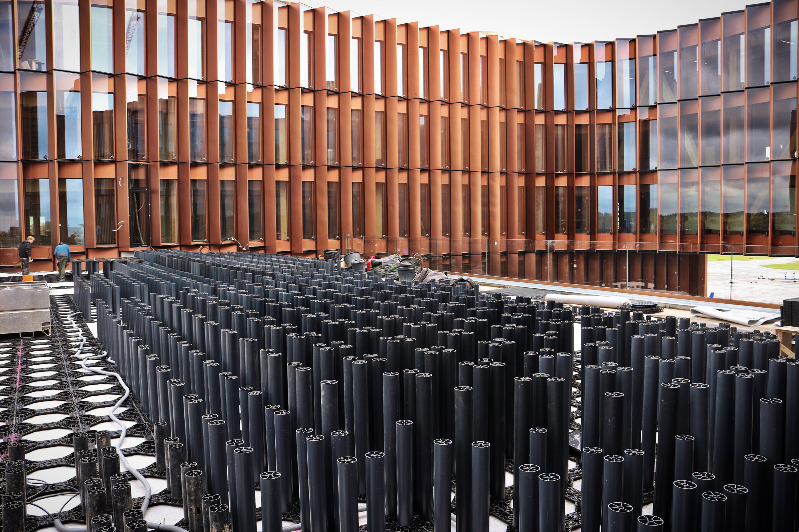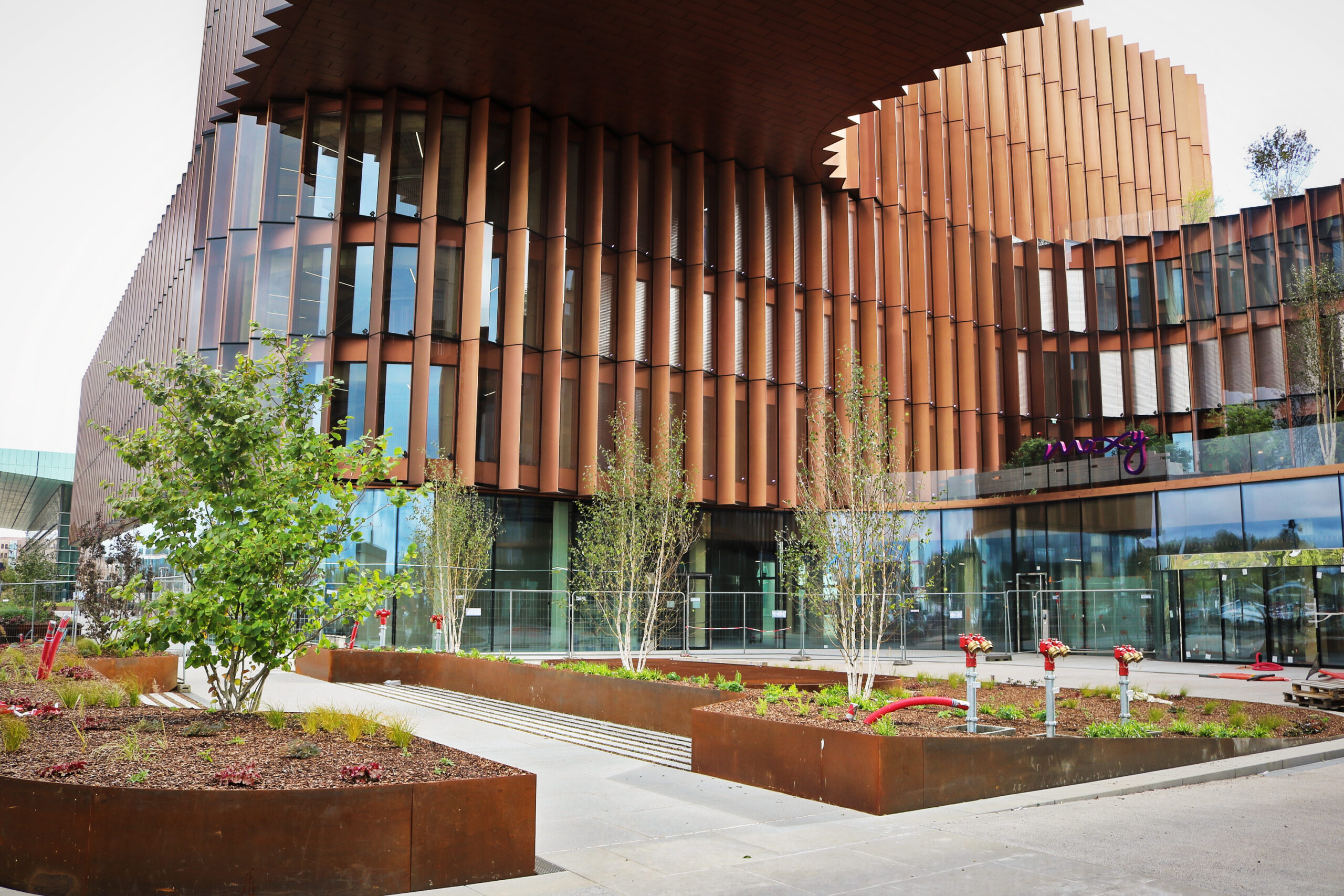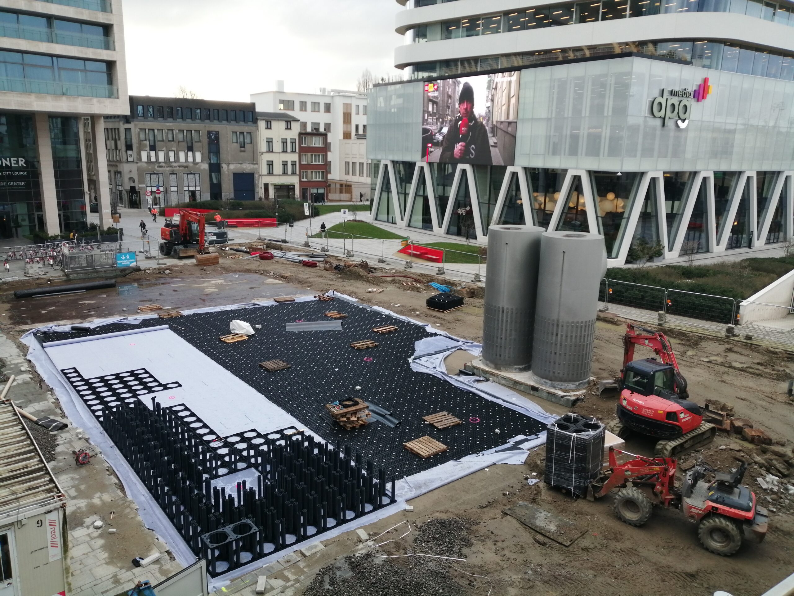 Projekt zahrnuje 10 teras vybudovaných pomocí systému TreeParker®. Pod TreeParker® byla aplikována drenážní vrstva 50mm sendvičového panelu TreeRaft, která odvádí vodu ze střech do určeného odvodňovacího bodu.