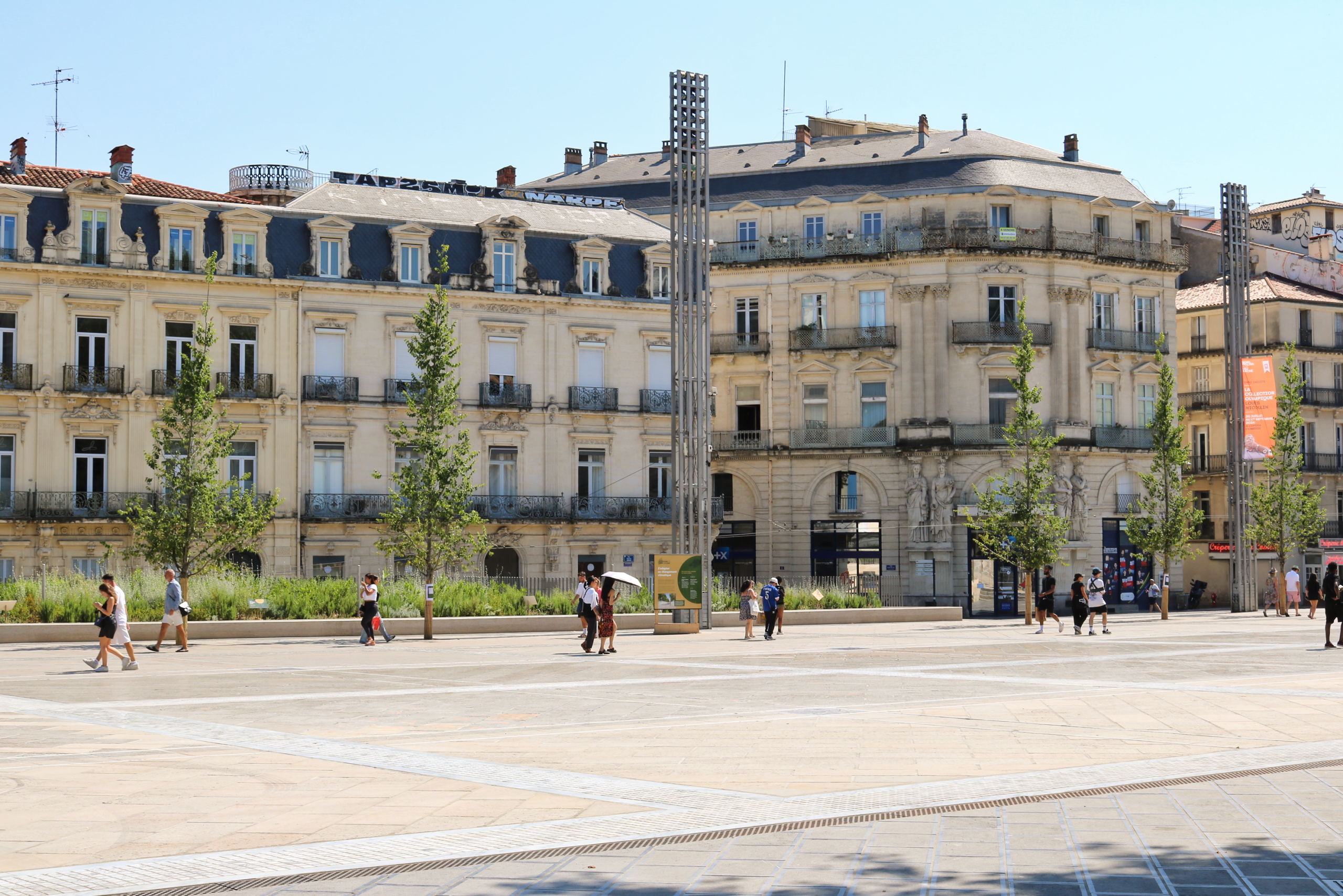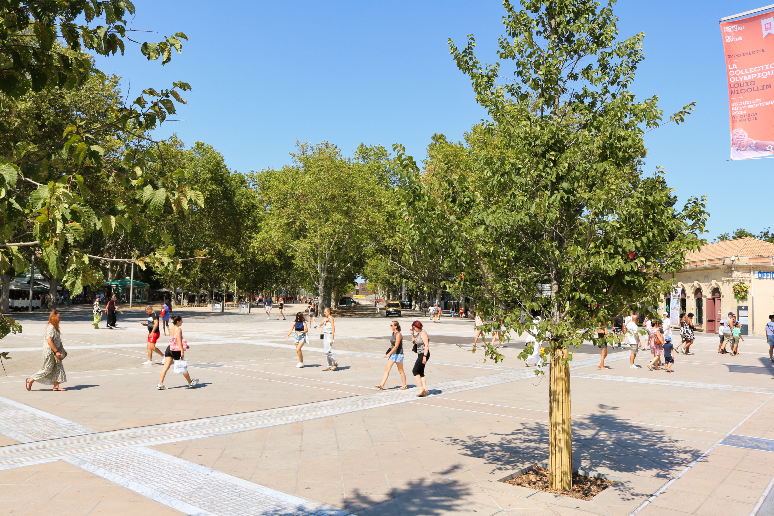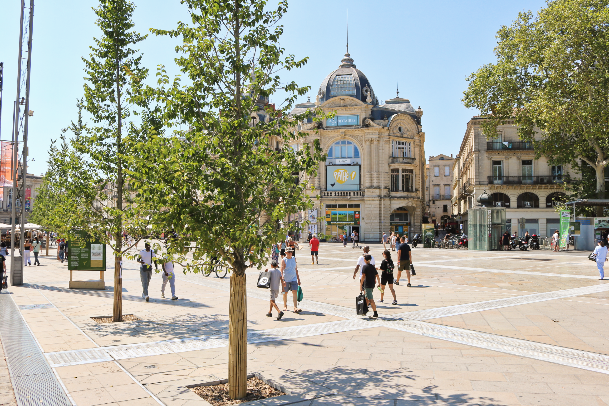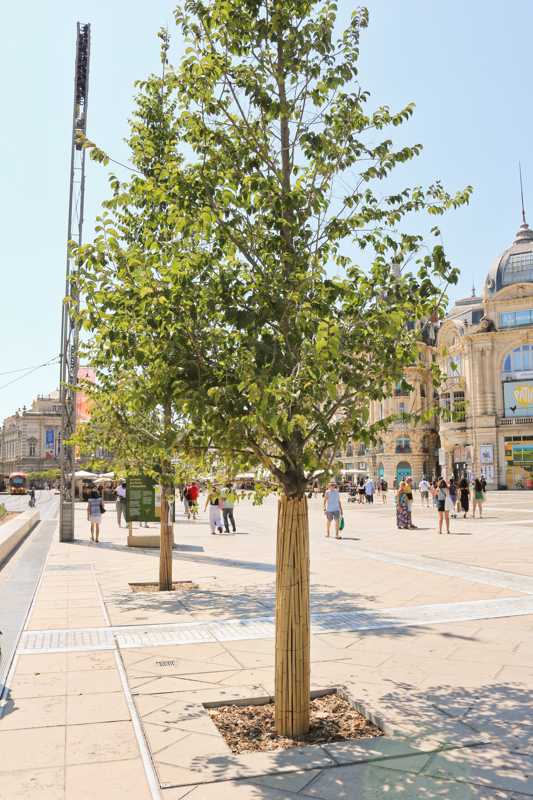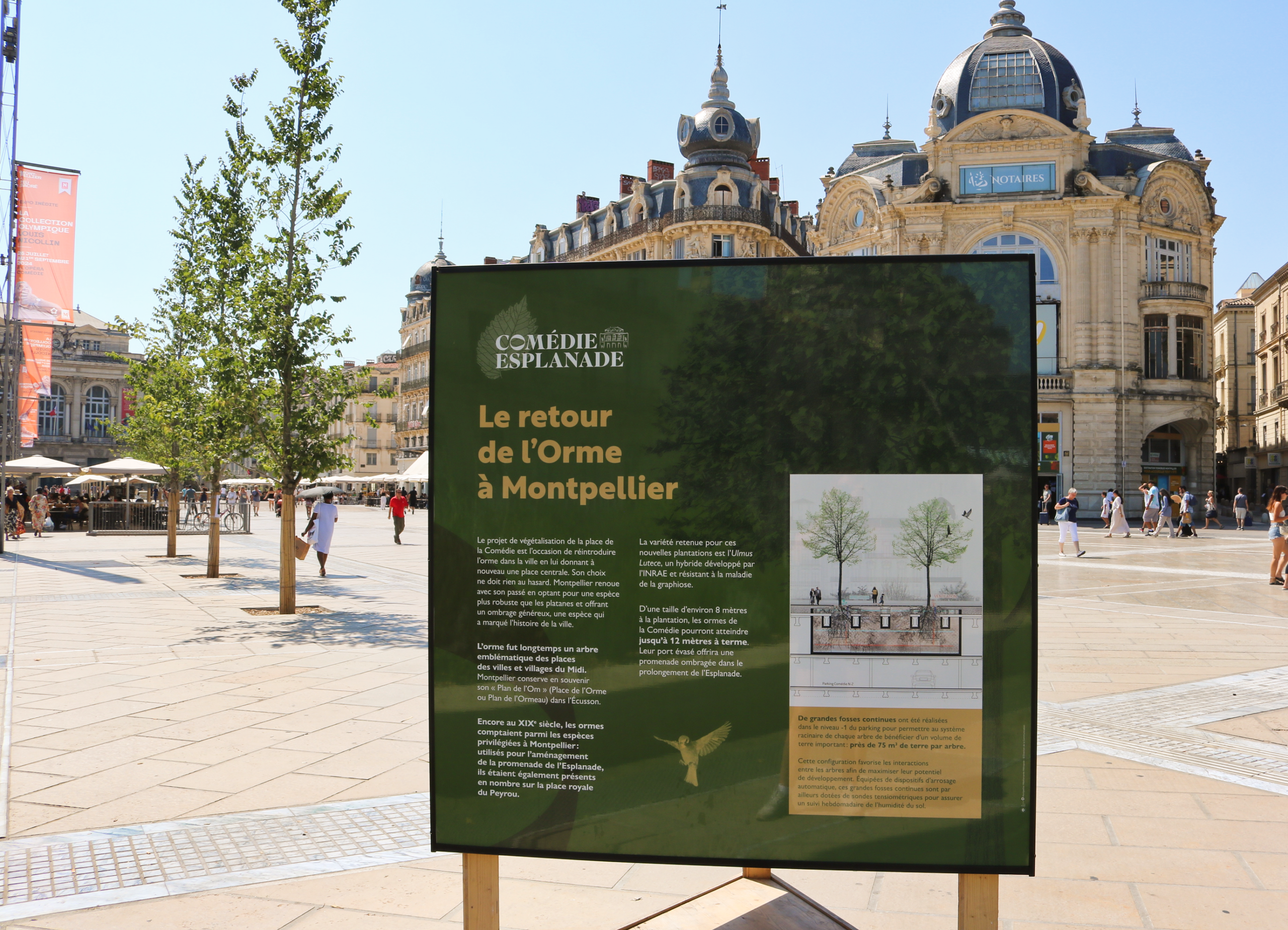 Projekt ozelenění náměstí Place de la Comédie byl příležitostí k opětovnému zasazení jilmu, který na místo historicky patří. Volba jilmu není náhodná. Montpellier tento druh znovu zavádí, aby zlepšil ekosystém a zároveň poskytl příjemné zastíněné místo, které je v souladu s historií města.